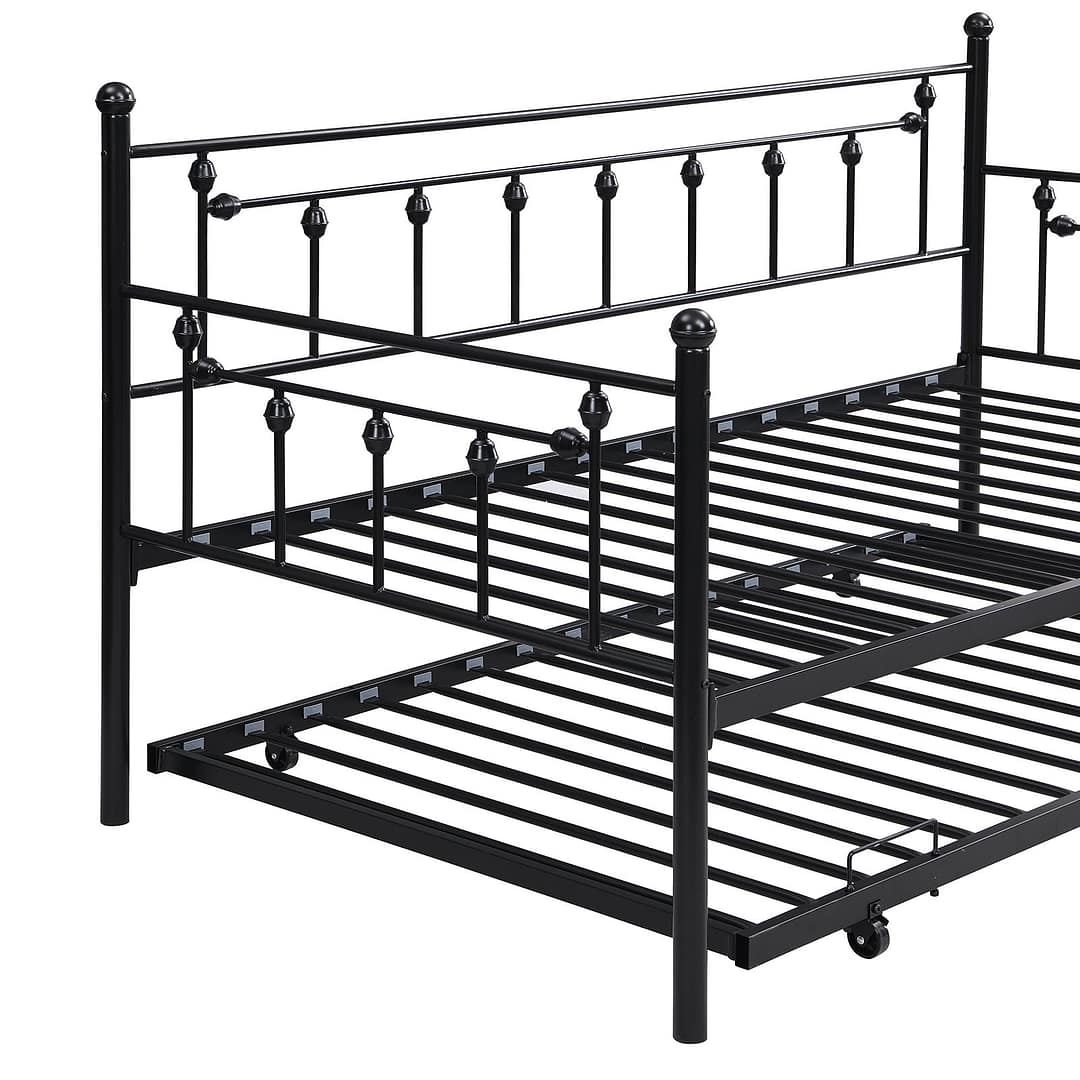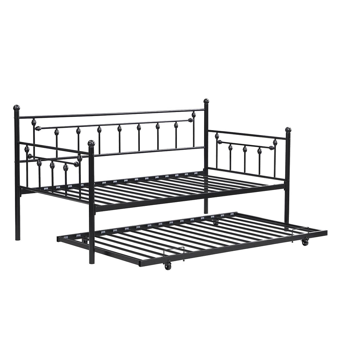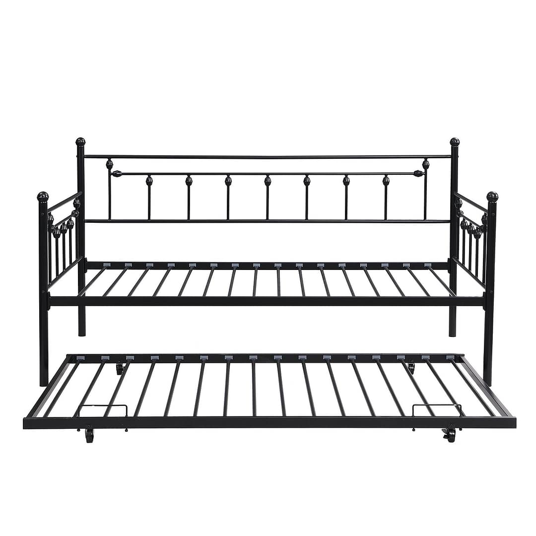 MIITODAY Traditional Twin Metal Day Bed Frame with Trundle