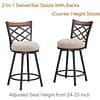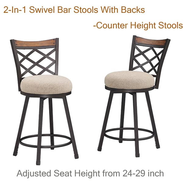 - Retro Vibe: These (2-in-1) 24 inch counter height/29 inch bar height stools bring vintage charm with rustic wood rails and antique brass metal frame.