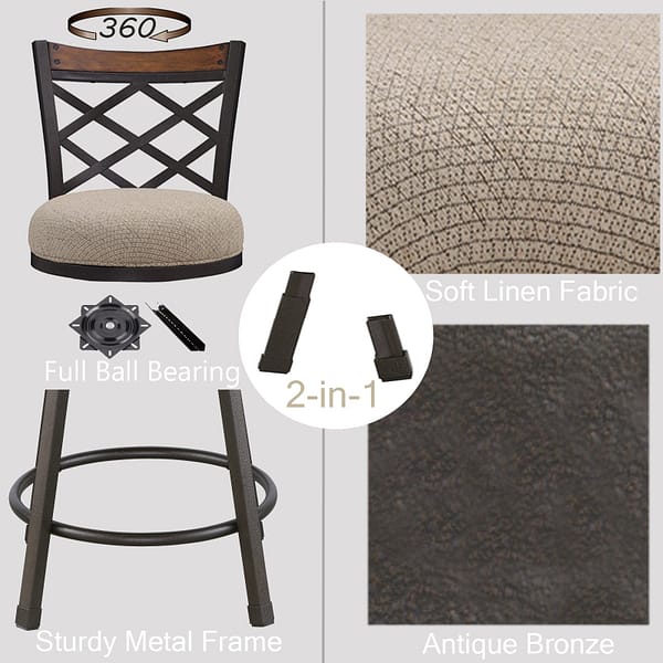 - Spin Around: Enjoy a 360 swivel with our super smooth and stable stools, comfy line fabirc seat included!