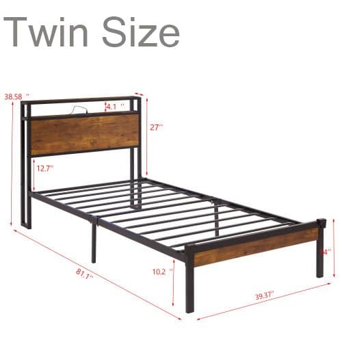 MIITODAY Metal Platform Bed Frame with Wooden Panels- USB Charger/ Power outlet for Twin,Full, Queen and King Size