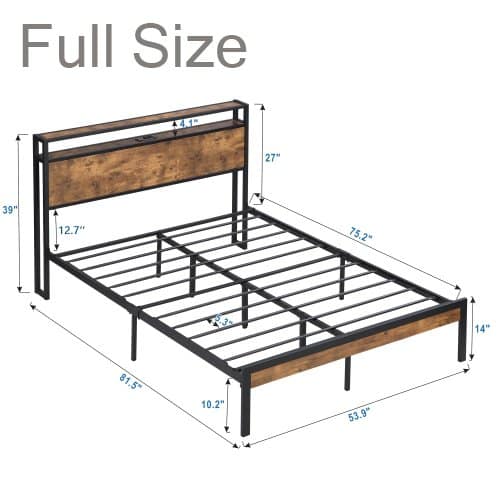 - Vintage Wood Headboard Farmhouse Bed, Heavy Duty Metal Platform Bed Frames