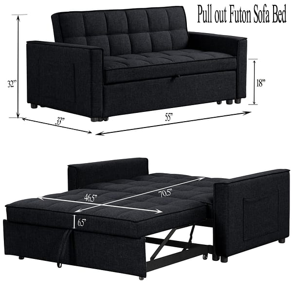 - Plush Cushioning: The pull-out sofa bed features cushions filled with thickened, high-resilience sponge that maintains its shape, even after frequent use. Note: The cushions may require up to 24 hours to regain their full elasticity after unpacking.